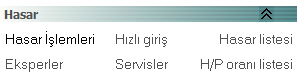 Poliçe hasarlarınızı takip edebileceğiniz, hasarın son durumunu, muallak tutarını, servis ve eksper bilgilerini görüntüleyebileceğiniz ve raporlama alabileceğiniz alandır. Ada yazılım ana ekranında aşağıdaki şekilde görünür