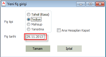 Gelen ekrandan fişin tipi ve saklanılması istenen tarih seçilir. Bkz.Şekil2