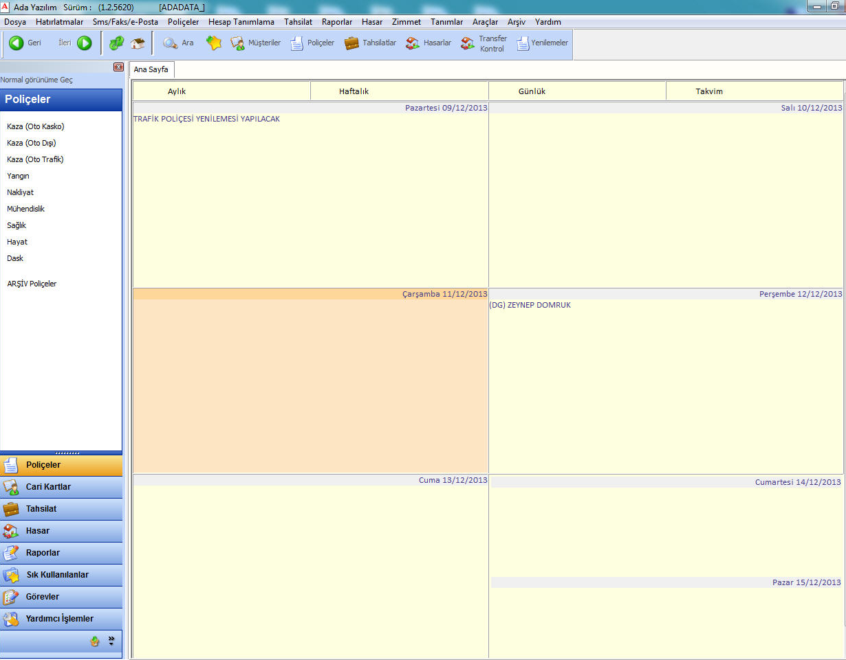 Düzlem ekranına girildiğinde gelen sayfa hatırlatmalar ekranıdır. Girilmiş olan bütün hatırlatmalar ekrana gelir. Üst satırda bulunan seçenekleriyle günlük, haftalık ve aylık hatırlatmalar ekrana getirilebilir. Hatırlatma’ya çift tıklanarak ayrıntılar ekrana getirilebilir. Aynı şekilde hatırlatmanın bulunduğu pencerede herhangi bir yere çift tıklanarak yeni bir hatırlatma girişi yapılabilir.