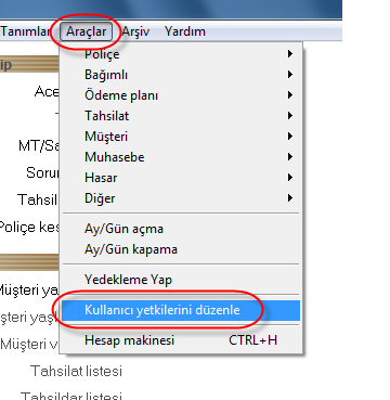 Programda giriş yapan kullanıcılarınıza istediğiniz yetkilerini kaldırabilir veya sınırlama koyabilirsiniz.Kullanıcılarınızın yetkilerini düzenlemek için Araçlar/Kullanıcı yetkilerini Düzenle adımından yapabilirsiniz.