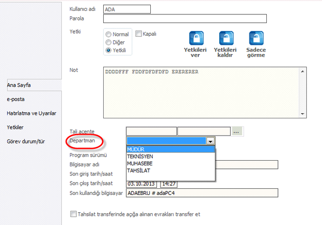 Eklediğiniz kullanıcılarda özel departman ayırımı yaparak da tanımlayabilirsiniz.
