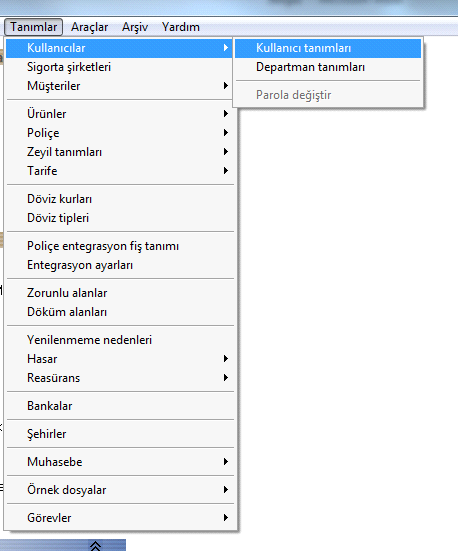 Ada programında yeni kullanıcı tanımlamak için ana ekranda Tanımlar/Kullanıcılar/Kullanıcı tanımları sıralaması ile kullanıcı ekleme ekranına gelinir.