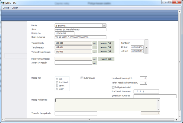 Banka HesabıTanımlama |