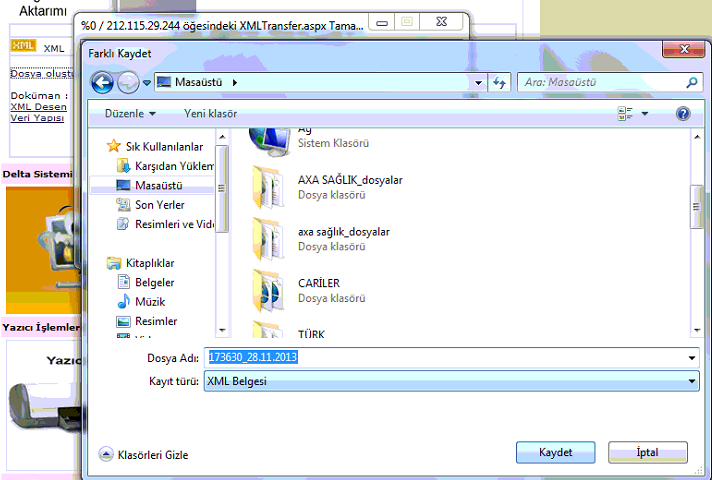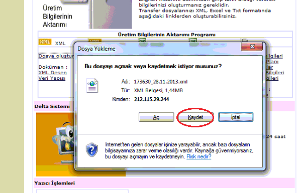 Masaustune indirdiğiniz xml dosyasını, Adayazılıma aşağıdaki adımlar vasıtasıyla transfer edebilirsiniz.
