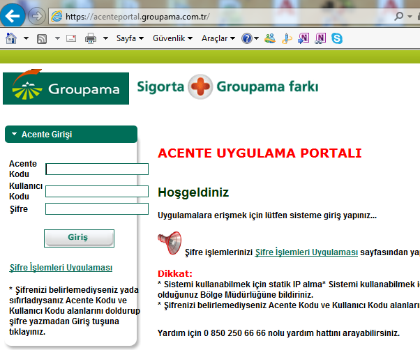 Groupama Sigorta poliçe transferi Groupamadan transfer alabilmek için öncelikle sisteme aşağıdaki şekilde giriş yapıp erişmeniz gerekir.