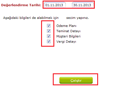 Açılan ekrandan tarih aralığı verilir ve kutucukları işaretlenip “Çalıştır” butonuna basılır.