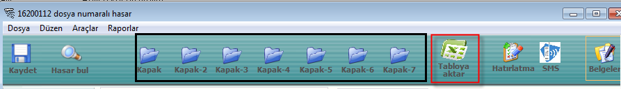 Hasar dosyanızın araç çubuğunda 7 farklı kapak vardır. Bunlardan birinin üzerine tıklarsanız hasar dosyanızdeki veriler baz alınarak bir kapak hazırlanır. Tüm kapaklara bakıp sizin için en uygun hangisi ise onunla kapak dökümü basabilirsiniz. Bkz. Şekil14