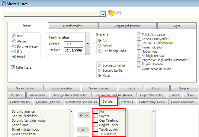 Şekil31=Müşteri listesi sahalar seçimi