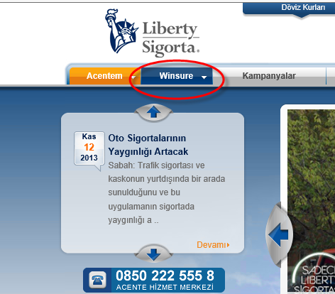 Liberty Sigorta şirketi için şirket ekranından giriş yapılır.