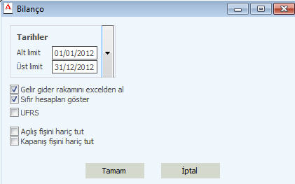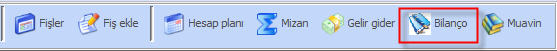 Bilanço dökümü alabilmek için muhasebe modülü altında araç çubuğundan Bilanço butonunu kullanmalısınız. Bkz.Şekil1