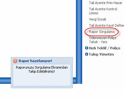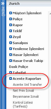 Sağdaki menüden Rapor Sorgulama ekranından şirketin size verdiği ftp linki üzerinden poliçe xml dosyalarına ulaşabilirsiniz.