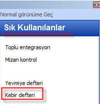 Kapanan dönem için kebir defterinizi yazdırabilirsiniz. Döküm almak için muhasebe modülünde sol frame üzerinde yer alan sık kullanılanlar sayfası altından Kebir defteri seçimine gelmelisiniz.Bkz.Şekil1