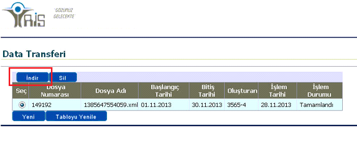 Gelen ekrandan altta olduğu gibi İşlem durumu ‘Tamamladı’ olduğunda İndir butonuna tıklarsınız.