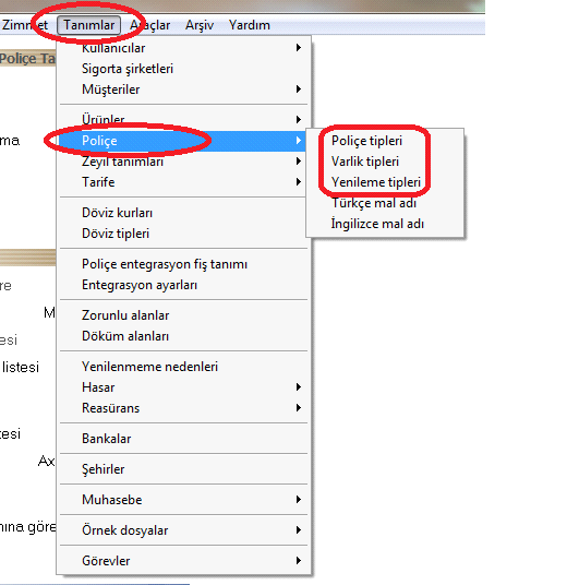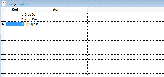 Poliçe ekranlarında Acente özel kısmında kendinizin belirlediği özel tanımlar girebilirsiniz. Poliçe tipi, Yenilememe nedeni ,Varlık ve Yenileme tipi gibi bilgiler tanımlayabilirsiniz. Tanımlamalar için Ada programından Tanımlar/Poliçe adımlarından tanımlama ekranlarına ulaşabilirsiniz. Çıkan ekranda CTRL+Y diyerek yeni satır açılır ve istediğiniz tanımlamayı yazabilirsiniz.Tanımlamalar bittiğinde ekrandaki verilerin kaydolması için ekrandan CTRL+W ile çıkılır. Böylece tanımlama işlemlerini bitirmiş olursunuz. |