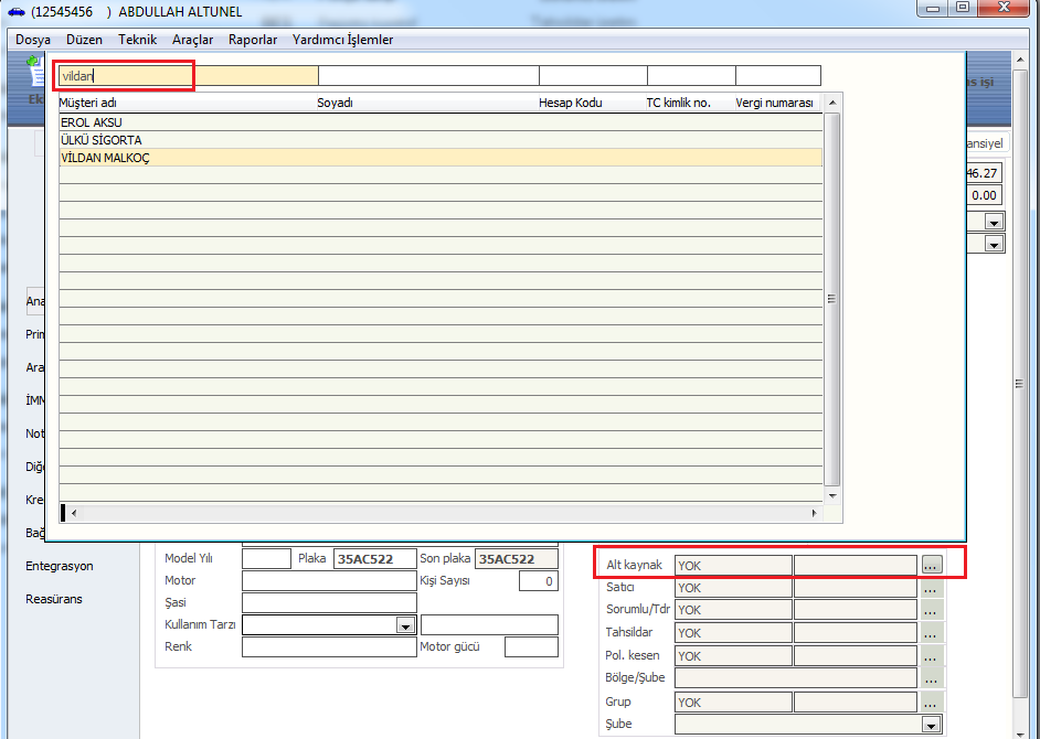 Poliçenizi bir satıcı, sorumlu ya da alt kaynak adını verdiğimiz tali acenteye baglamak için poliçe uzerinde CTRL+D ile