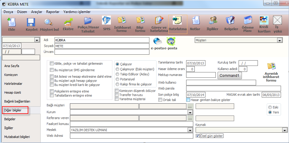 Şekil13=Müşteri diğer bilgiler ekranı |