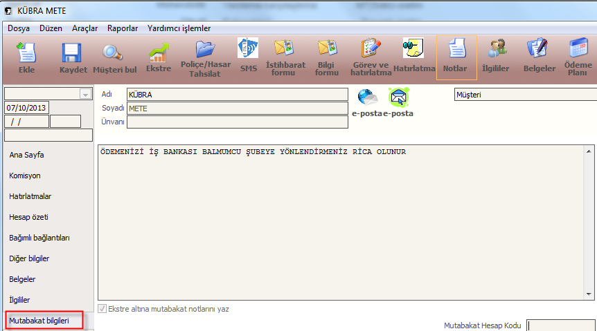 Müşterinizin hesap ekstresi sonunda yazmasını istediğiniz özel ifadeleri kayıt edebileceğiniz ekrandır.