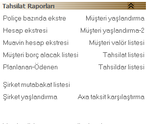 Tahsilat Raporları menüsü sayseinde mutabakatlarınızı düzenli ve kısa sürede yapabilirsiniz.(Bkz:Şkl 1)