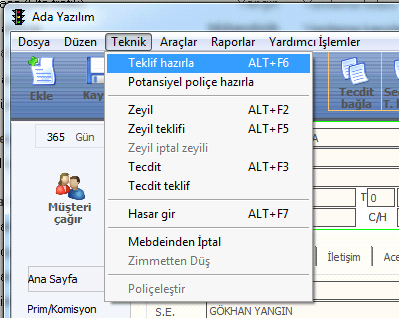Teklif Ekleme Sisteme teklifleri kaydedebilmek için öncelikle kendi branşından girmeniz gerekiyor. Örneğin Kasko branşına ait bir teklif girilecek ise, Kaza (Oto Kasko) linkinden girip Teknik/Teklif Hazırla menusunden giriş yapabilirsiniz.