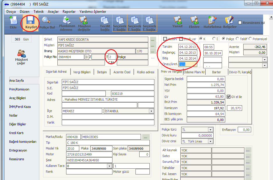 Şekildeki gibi yeni bilgileri ekrana girin. Tecdit numarası olarak kaç numaralı tecdit oldugunu yazın. Kaydet butonu ile saklayın.