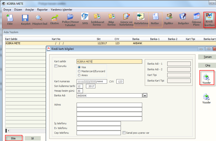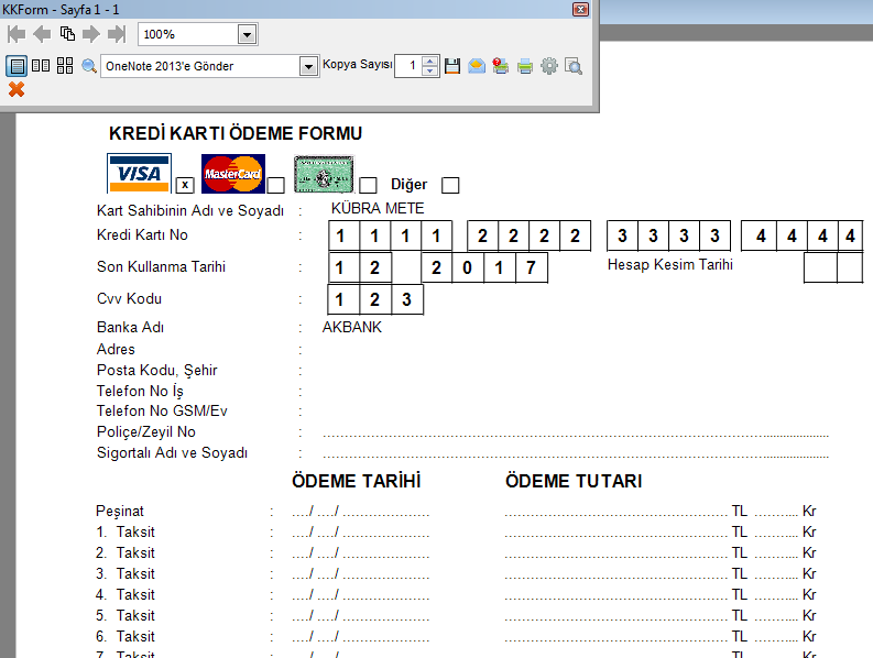 Kredi Kartı Ekleme ve Ödeme Formu Yazdırma |