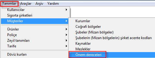 Şekil26=Menü adımı Şekil27=Müşteri önem derecesi ekleme
