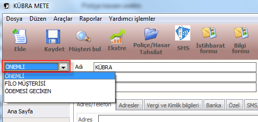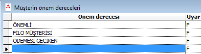 Müşterilerinizin önem derecelerini programa tanımlayabilir ve cari kartlar üzerinden seçebilirsiniz.